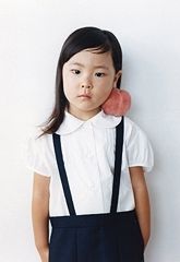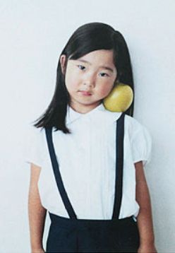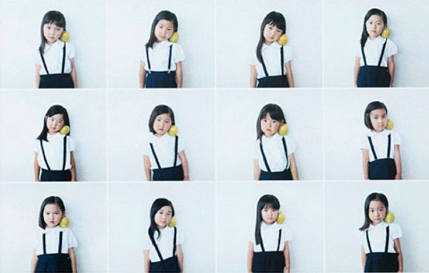 以前、このブログでも紹介したことがある、ファッションフォトグラファーの横浪修さんの作品。4歳の少女に同じ服を着せ、同じポーズをしてもらって写真を撮った。この歳の子どもが首をかしげたり、すくめたりするときの愛らしさ。その個性をより明確な表情に出るようにと、首に果物や野菜を挟ませている。