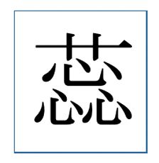 芯を二つの心が支えているように見えるが、解字辞典によると「心を三つ集めてその形を仮借して花しべ(萼)のこととし、これと艸と会意して しべ の意とした。」とある。音読みで「ずい」。