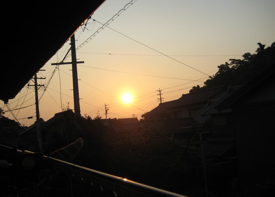 二階には赤くただれた太陽の影 ピピも朝からうんざりの体だ