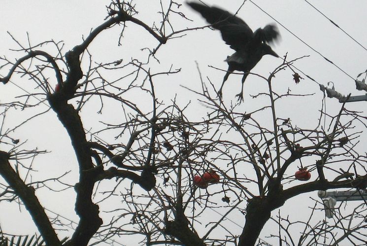 ♪ 柿の実のわずかとなりし夕寂びのそぞろなるかな一羽のカラスく