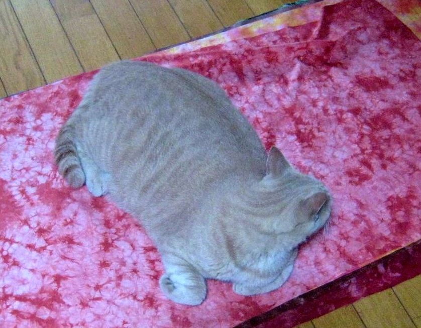 猫は布が好きだ。夏の間はさすがに板の間に伸びていたが、涼しくなって布が恋しくなって来たらしい。写真を撮ろうと思って置いてあった布の上にちゃっかり乗って、嬉しそうな顔をしている。