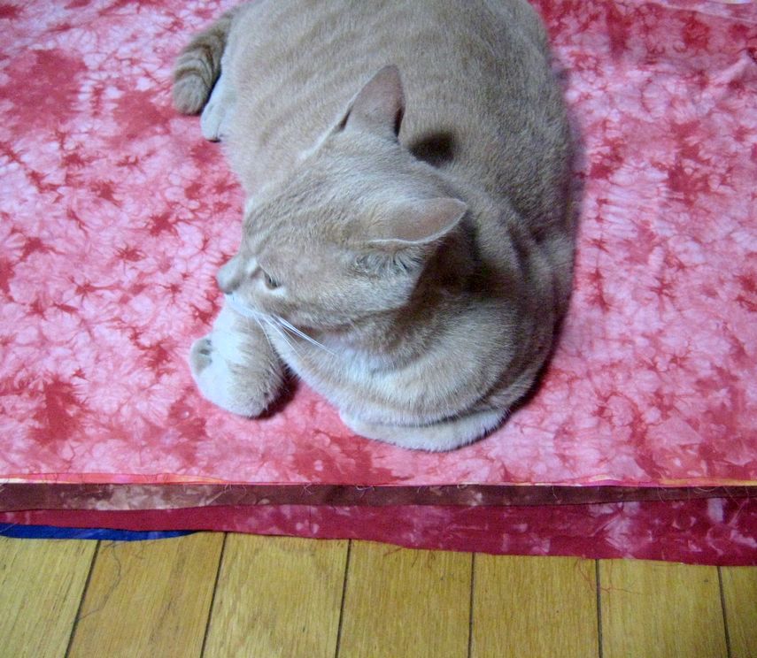 大事な布だ汚されては堪らないが、真夏ほどは毛が抜けないので、まあ許すことに。