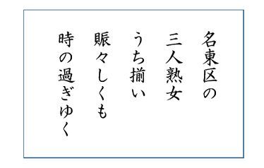 ♪ 名東区の三人熟女うち揃い賑々しくも時の過ぎゆく