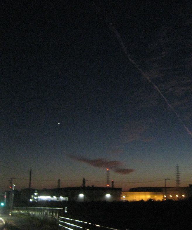 5時に閉店の店を出て、5キロの道を歩いて帰る。風がやたらに強いが夕暮れの美しい空が広がっている。