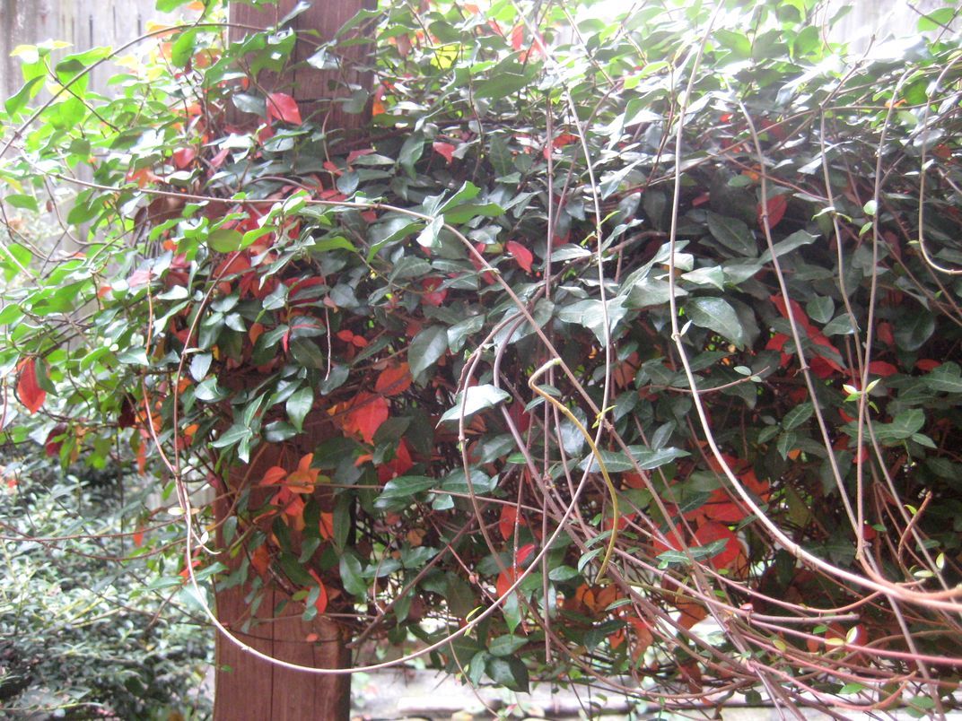 葡萄の棚の下にあるため、肝心の夏日が当たらない。葡萄の葉が落ちてようやく日が当たるようになったが、時すでに遅く、真っ赤な花にはならず紅葉がはじまった。