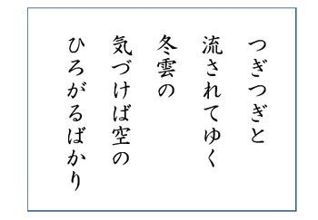 ♪ つぎつぎと流されてゆく冬雲の気づけば空のひろがるばかり