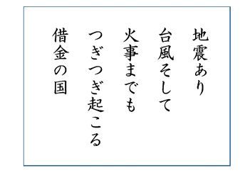 ♪ 地震あり台風そして火事までもつぎつぎ起こる借金の国