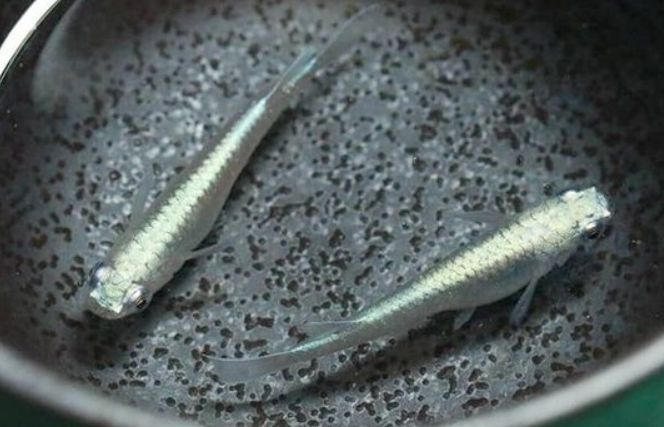 育てる人の育て方によって鮮やかになり大きさも増すという、可能性を秘めた育て甲斐のあるメダカらしい。そのため餌もそれ専用のものが売られていて、より鮮やかな朱色を出すためには欠かせないといい、現物のパッケージを見せてもくれた。熱帯魚などを売っているところに行けば買えるらしい。