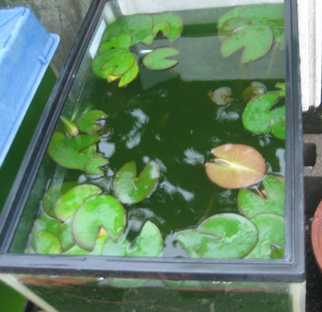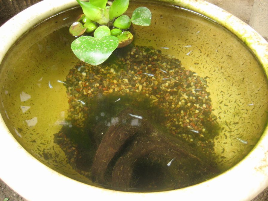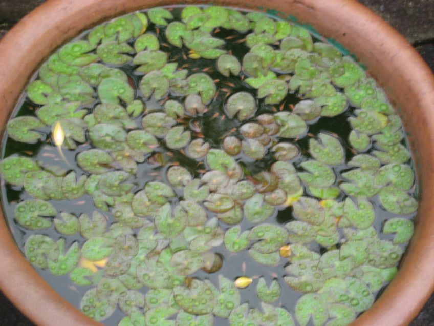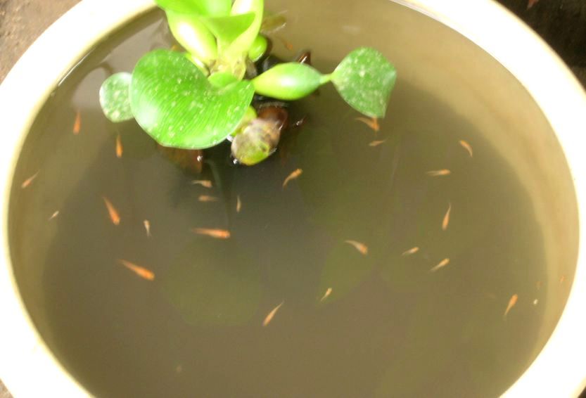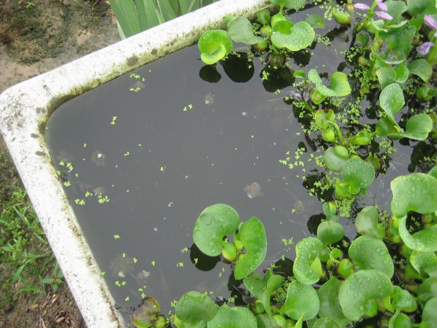 まだホテイアオイなど何もなかったころ、中に黒メダカがたーくさん泳いでいるのが見えた。ただただ目が釘付けになって喉から手が出そうだったが、勝手に採って来るわけにもいかない。