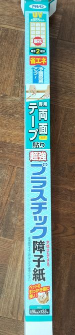 襖紙は高いし雰囲気も合わないので、今回はプラスチックの障子紙を使用。両面テープで貼り付けるだけなので簡単だし、紙が破れたりすることも無い。剥がして張り直すことも簡単にできる。