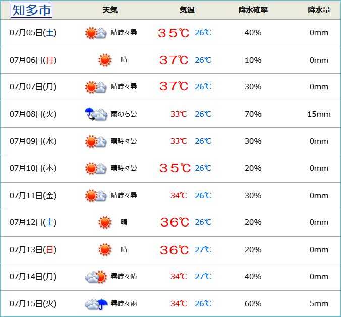 ここ知多市は、これから気温がうなぎのぼりで上昇し、36℃くらいまでいくらしい。明日は37℃というトンデモナイ予想が出ている。