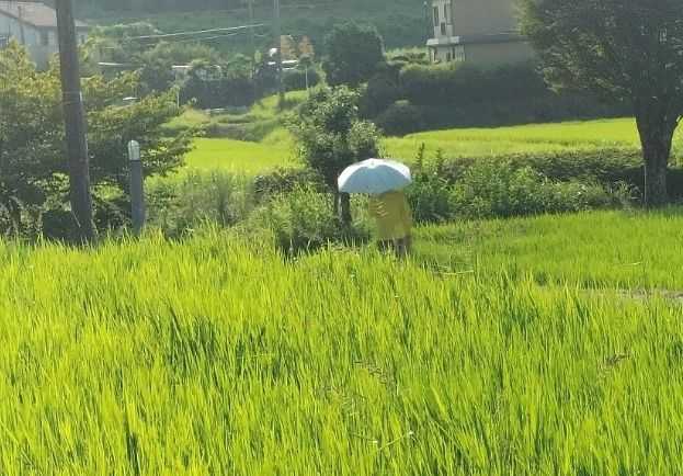 いいオッサンも日傘をさしてのウォーキング。