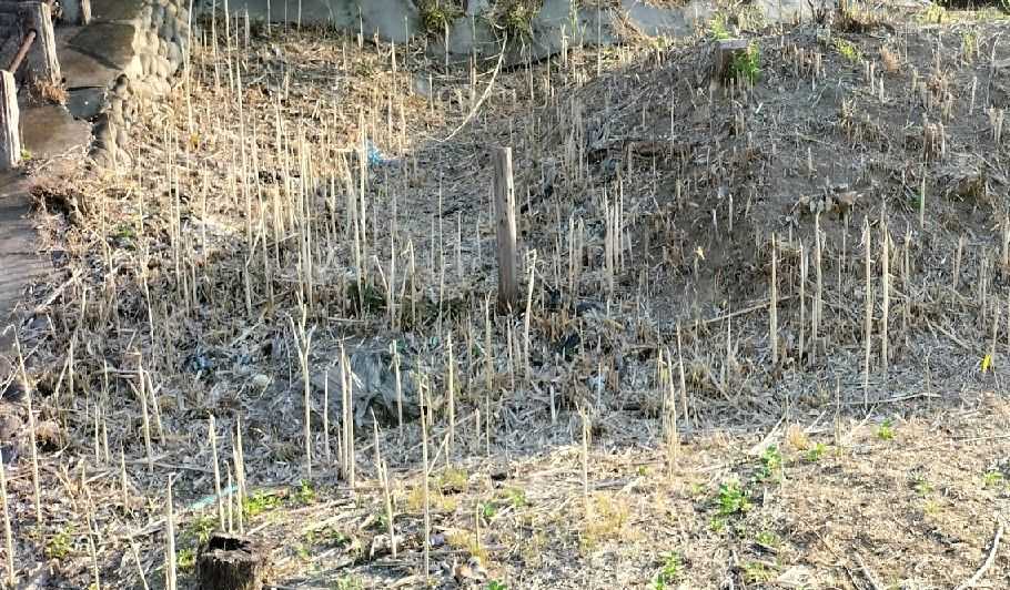 篠竹のあった場所に除草剤が撒かれたらしい。