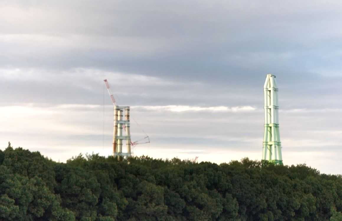 中電知多火力。解体中の煙突。
