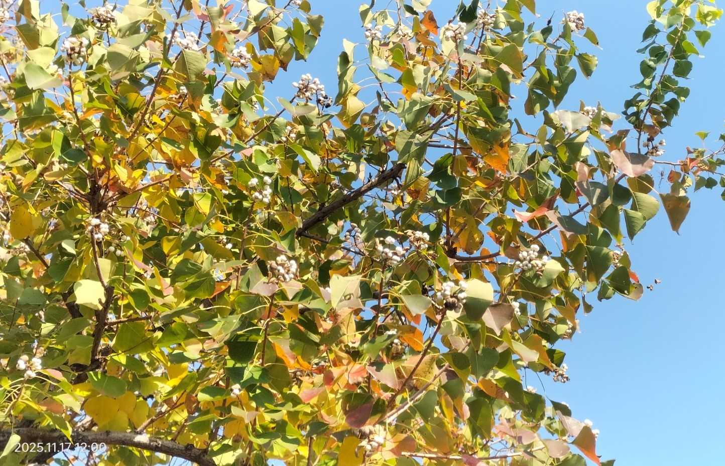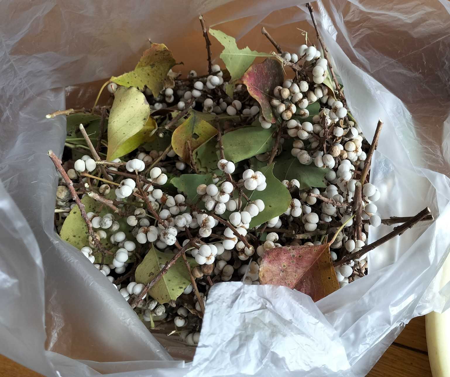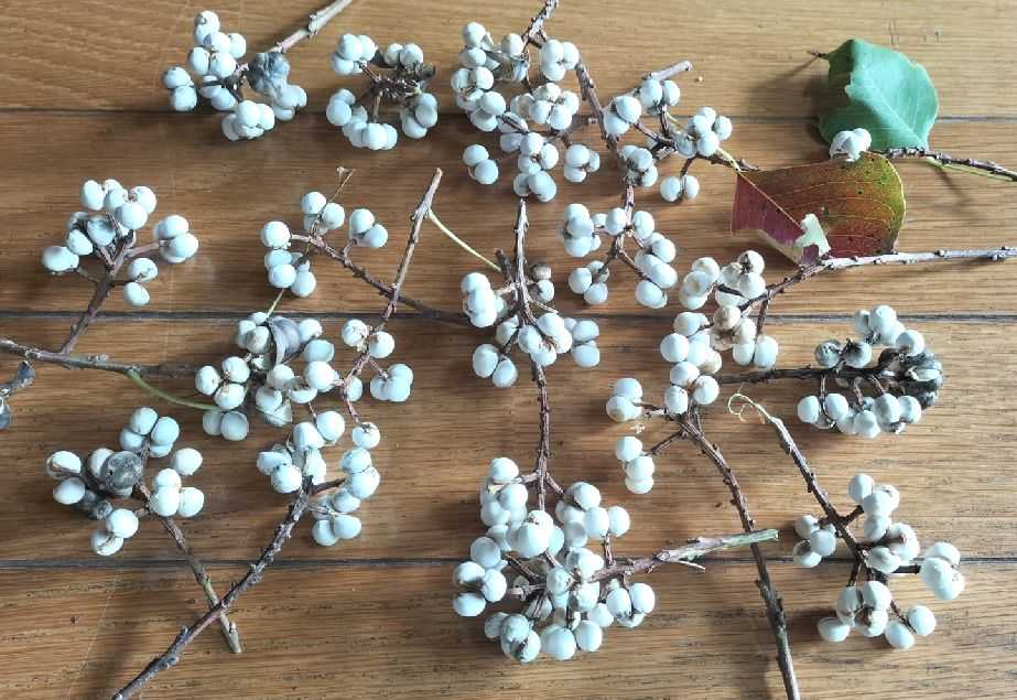 可愛らしい実で、葉が落ちた木では “白い小花” が咲いたように見える。