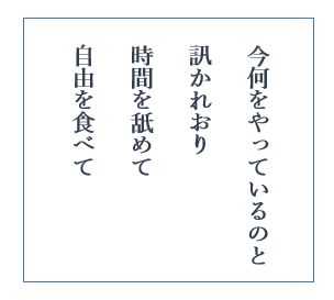 ♪ 今何をやっているのと訊かれおり時間を舐めて自由を食べて
