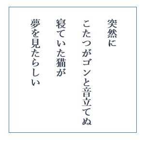 ♪ 突然にこたつがゴンと音立てぬ寝ていた猫が夢を見たらしい