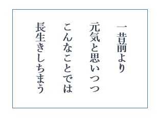 ♪ 一昔前より元気と思いつつこんなことでは長生きしちまう