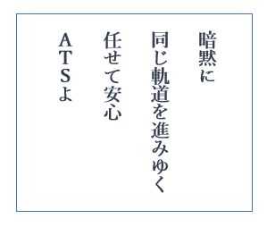 ♪ 暗黙に同じ軌道を進みゆく任せて安心ATSよ