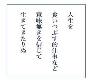 ♪ 人生を食いつぶす的仕事など意味無きを信じて生きてきたりぬ
