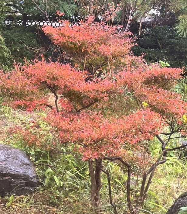 カミキリムシが入っていたのを駆除して、無事に育ってくれた満天星躑躅。真っ赤に紅葉して息子の庭に彩を添えてくれている。
