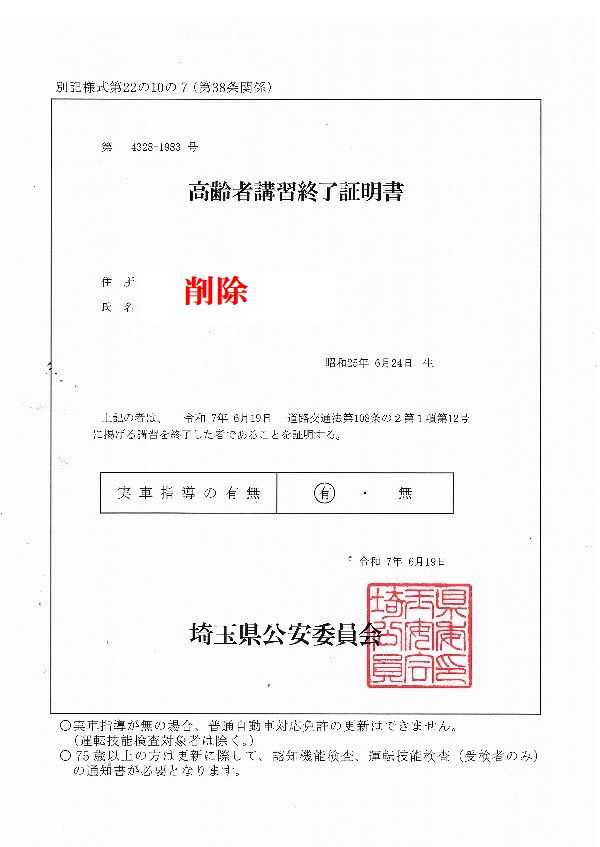 【高齢者講習修了証】