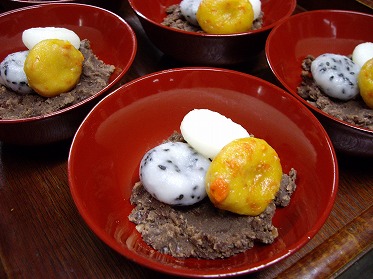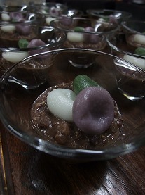 昨日から第二回目のスエットロッジが始まりました。みんな初対面だけれど和気あいあいとした楽しい雰囲気。この日をとても楽しみにしていたのが手に取るように伝わってきます。もちろん食事も楽しんでね。今晩のデザート。しっとりとした和風スイーツです。「白玉団子の小豆汁粉」三種類の白玉団子たち。よもぎと紫さつまいもを使って色をだしました。落ち着いた和のテイスト。秋の夜長にぴったり。番茶が良く合います。小豆は土鍋でことこと炊いて七割ほど煮えたらドライフルーツのなつめやしをみじん切りにして一緒に煮込んで甘みづけ。小豆によく合うんです。今回はこれに玄米甘酒も加えてお汁粉にしました。しかも!写真では姿は見えませんが小豆の奥には甘栗が隠れているのです。白玉団子を小豆あんにからめて食べて最後に甘栗が顔をだす…という仕掛け。小さな器に盛りだくさんだけれど全体がとてもいいバランスでまとまってなんかとってもウキウキ気分。こんなささやかなことですぐに幸せになれる私って…。こんな日常の小さな喜びを大切にしたい。明日は今年最後の祝いの食事。さて頑張るぞ!このスエットロッジを指導するネイティブアメリカンのマリリンの言葉。「宇宙はいつも私たちを見守っていて 常に祈りを聞くために耳を傾けてくれています。 私たちが発する言葉や思考が現実を作っているのです」。ならばどんな思いも願いもあきらめずに言葉にしよう。幸せの鍵は自分の心の中にあるのだから。この美しい自然は私たちに平等に与えられた天からの贈り物。青空に両手を広げて思いっきり深呼吸しよう。確実な幸せへの第一歩。明日もまた素晴らしい一日になりますように。大地の恵みに感謝…!
