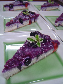 作りおきしておいた巨峰の丸ごとコンポート。今日はそれを使ってタルトを焼きました。「養生園の週末ご飯」にも載っている豆腐のチーズケーキ風をアレンジ。「巨峰のタルト」です。今晩のゲストは20人。コンポートの量が少なかったのでフードプロセッサーにかけてペースト状にして固めました。豆腐のところもこの巨峰ソースを入れたので上品にうっすら紫色。冷凍しておいたブルーベリーと養生園スイーツ定番クコの実も入れて、色鮮やかな大人のスイーツに。味付けや作り方は本の中のデザートのページを是非参照下さい。シンプルなのでかなりアレンジができます。今日もそのひとつ。久々に作った豆腐のチーズケーキ。巨峰さんありがとう。明日もまた素晴らしい一日になりますように。大地の恵みに感謝…!