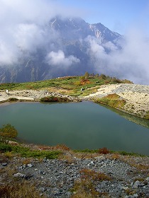休みになると快晴。もしかして私って晴れ女?今日も朝から陽射しが眩しい。いそいそとおにぎりを作ってリュックを背負いまたしても白馬へ…!白馬は10年前の冬季オリンピックの開催地。たくさんのスキー場とゴンドラやリフトで途中まで登れるハイキングコースが多く手軽に山を満喫したい私にぴったり。今日はお気に入りの白馬八方池に。標高2000mに浮かぶ池、八方池です。ちょっと霧かかっていますが北アルプスの壮大な山々を背景に赤や黄色に染まりつつある木々と緑色の水の色の対比がとてもきれいでした。天空の城にいる気分。紅葉は比較的低い木々や草から始まります。白馬の山も確実に秋色の錦に包まれていました。今日はもう少し足を伸ばしてここから更に唐松岳方面へ軽い登山。いつもならこの周辺でおにぎりを食べてうつらうつらして帰るところですがなんかそんな気分になっちゃったので思わず登ってしまいました。その途中の眺め。白馬三山(鑓ヶ岳、杓子岳、白馬岳)です。染み渡るような青空に勇壮な姿がよく映えていてもう、ほれぼれするほど力強く、そして美しい。心に染み込む景色です。そして到着した場所は、ここ。丸山ケルンです。標高2430mの眺め!富士山を除いて私が登った一番高い場所です。ひゃっほ~!そして眼下にはこんな幻想的な景色が…。一面に広がる雲の海。厚い雲の層が川の流れのように静かに波うってました。幻想的な世界。天上人になった気分。いつも見上げている山の上にはこんな景色が隠されていたんだ。少しだけ得した気分。山の神様、ありがとう。山に登るとその途中になんとかケルンってよく見かけますよね。ケルンとはアイルランド語で「石塚」を意味し登山者ためにその道しるべとして石を積み上げた目印のこと。う~ん、なるほど、ね。だからどこのケルンにも石の小山があるんだ。この丸山ケルンは唐松岳への登山路の道しるべ。もう少し頑張れば山頂に到着します。きっとその眺めも素晴らしいはず。次回は是非チャレンジ!明日もまた素晴らしい一日になりますように。大地の恵みに感謝…!