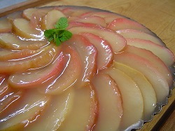 おっと、デザートを忘れちゃいけませんよね。この日も今が旬のりんごが登場。りんごのタルトです。赤い皮の色が重なって山の紅葉を思わせます。たてに長くスライスしたりんごにレモンとゆず果汁をふりかけ塩少々入れてりんごの水分だけで土鍋でことこと煮ます。しっとりして火が通ったら豆乳を加えてなめらかにしたさつま芋タルトの上に花びらのように美しく重ね葛でとろみをつけたりんごジュースを上からまわしかけまます。切り分けるとこんな感じ。この日のメインディッシュがボリュームあるものだったので小麦を使ったタルトパイにはせずシンプルなものに。優しい色合いのタルトになりました。ハーブガーデンのミントが味のアクセント。今日は柔らかい日差しを浴びながら近くに住む友人とつかの間のおしゃべりを楽しみました。優しく流れる時間が心地よかったです。明日もまた素晴らしい一日になりますように。大地の恵みに感謝…!