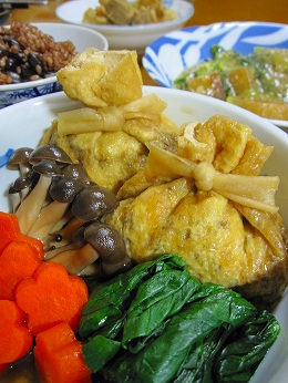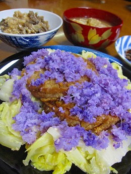 明けましておめでとうございます。今年もどうぞよろしくお願い申し上げます。ここ埼玉での年明けは久しぶり。朝から真っ青な空が広がりすがすがしい一日でした。のんびりと迎えたお正月。あぁ~平和だなぁ…。さて今晩はうちでご飯です。でも出先から帰宅したら、時間はないしすぐに食べたいし…で結局なるべく手間がかからなくて見栄えがして旬の野菜が味わえる料理、ということになります。ま、いつものことですけど…。今晩の夕食より。「車麩のステーキ 紫大根おろし添え」。前回のブログの大豆たんぱく同様に生姜醤油で下味をつけて焼いた車麩。今回は漬けておく時間がなかったので約10~15分程度煮て味を染みこませました。煮汁をたっぷり含んだ車麩に粉をまぶしてフライパンでじゅ~っと両面をソテーします。さっと蒸したキャベツの上に盛り付けて出来上がり。車麩を焼く時に油を使ったので紫大根のおろしをたっぷりかけました。その甘いことと言ったら…!彩りも美しく車麩のステーキにぴったり。蒸しキャベツもそれだけで十分に美味しいけれど塩を少しまぶして炒り白胡麻を混ぜ合わせて盛り付けました。香ばしさがプラスされてさらに美味しさアップ。胡麻は肝臓や腎臓を補う作用があり不老長寿の源とされている食材。毎日欠かさず食べてます。そして車麩。良質のグルテンが豊富に含まれて煮物から汁物まで幅広く活用できる優れもの。車麩という名前は丸くて車輪のような形が由来。食材の買い置きがない時や献立に迷う時に大活躍。お野菜との相性ばつぐんですぐにメインディッシュが出来上がります。しっかりと味を含ませるのがポイント。ちなみにその他は舞茸しめじとごぼうの炊き込みご飯、白菜とお芋の味噌汁、それとひじきの煮物です。ほとんど残り物の再利用なんですけれどね。定番料理はいつ食べても飽きない味。そしてシアワセなひとときを与えてくれます。平凡でもこんな穏やかな瞬間に満ちた一年でありたい。そんなことをふと思った元旦の夕食でした。皆さんにとって今年も良い一年になりますように。大地の恵みに感謝…!