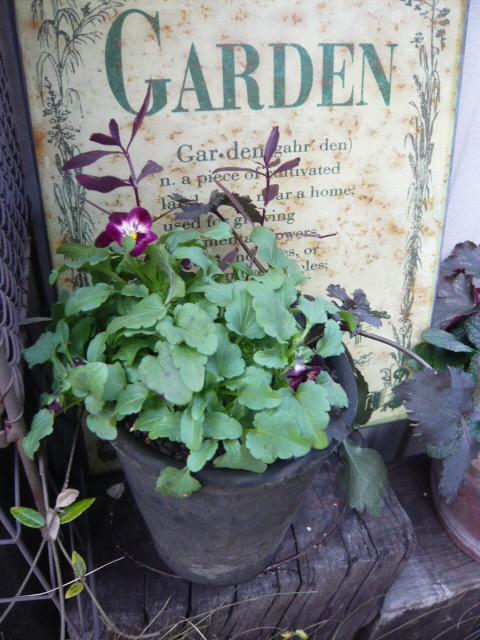 今日は寒かったですね~今週は今イチすっきり晴れなさそうです…お花たちの成長も一段とゆっくりになりそうですネ二人のおチビさんも風邪っぴきだしさて。ずいぶん前に作った寄せ植えですが…あんまり成長してないような気が… しかも半日陰、というよりほぼ日陰の場所に置いてあるので花つきがとっても悪いのですヨ…置き場所変えようかしらプリキの鉢にハボタンとビオラ3種、コクリュウを植えていますビオラはブラックパールとフロチョコ、あともう1種は忘れてしまいました^^;咲くまでわかんないですね一昨日upしたカルーナこんなイイ色なの~なんか毛糸みたいで暖かそうよねカルーナって今まで全然ちゃんと見てあげてなかったけど、よくよく見るとカワイイ~ クローバー ティントネーロ太陽の日差しを浴びて活き活きしてますみんなお行儀よく太陽にお顔を向けてますね去年は水切れで枯らしてしまったから今度こそ^m^ ランキングに参加しています一日一回ぽちっと応援クリックしてもらえねと嬉しいですコメントも気軽に残してくださいね
