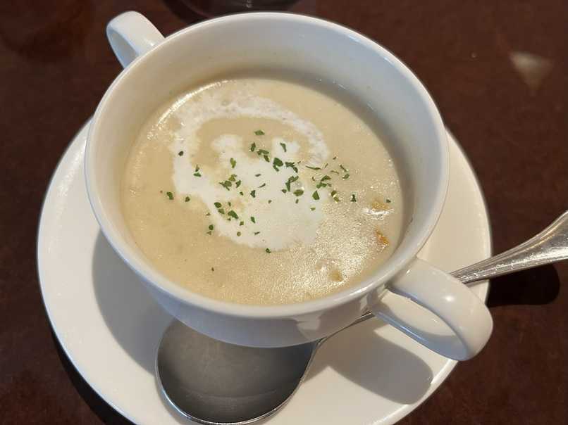 マンションの1階にあり、パン屋さんですが、券を買うと大きいイートインスペースがあって、店員さんが注文したものを運んでくれいます。