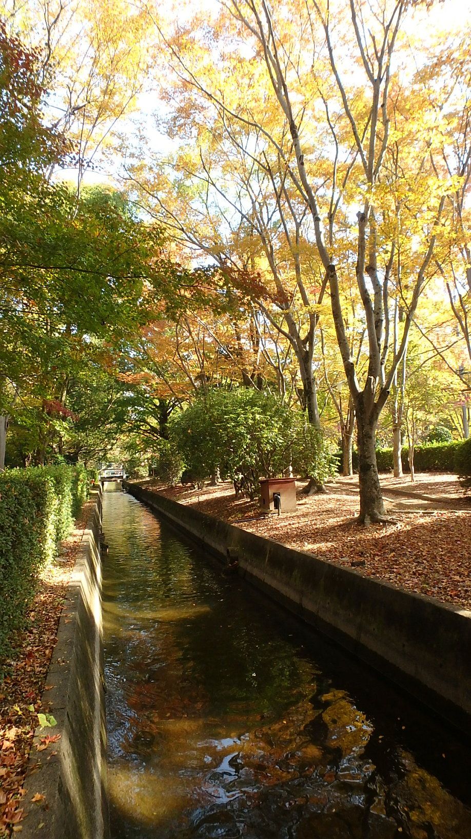 【岡大・石庭と紅葉。津島東キャンパス、大学会館南】