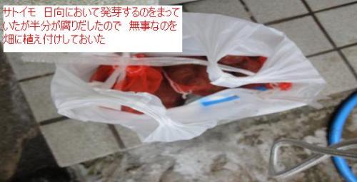 2年前もサトイモの種芋は2kgを買ってきている植え付けも30個としよう 昨年は赤め大吉 今年は白芽大吉となっている今年は水遣りが楽に出来る畑が良いので m-08にしよう2月21日 種芋の白芽大吉を2kgを買ってきた3月14日 植え付けの畑の畝の準備をしよう しばらく芋は日光に当てておく3月28日 m-8の畑の4に全部の種芋を植え付けした4月25日 まだ発芽していない 土の中の里芋は芽が伸びだしているが 土の中だけ5月02日 まだ発芽していない 5月11日 やっと1本目の発芽 これから どんどんと5月16日 畑をみても まだ1本のみ 水をバケツでドカーンとやっておく5月17日 夕方に畑にいくと5本が追加で発芽していた また ドカーンと水をやっておく5月23日 その後9個が発芽している 半分になった5月28日 発芽したのは20個 残りは10個になった6月06日 発芽したのは25個 残りは5個くらい まあまあだなあ 水遣りで水槽を置く6月13日 他の里芋 m08で3個 m20で3個 m-07でも3個が発芽している 水槽はそのまま6月20日 水を移動する実験をやっているが そうは簡単にはいかない6月27日 雨がよく降るので水はやらなくても良い 今度は水の補給の実験は簡易ポンプ7月04日 m08/3-m07/3-m20/3=9個もメインのm-08の畑に移動しておいた7月19日 みずやりは溝に水をいれておく 7月25日 溝の水かなくなってきた 里芋にもみずやりを1週間に3度やっておくとする8日01日 横の水路が7月19日より中干しするので水が止まっていた 8月より水路にまた水8月08日 横の溝に水がまた 溜まってきている これで水遣りは また週一に戻す8月22日 サトイモは横の溝の水のおかげで 元気8月29日 サトイモの葉に虫が大量に発生中 退治しておいた9月03日 よその畑を見たら よそだけどサトイモが枯れている これ猛暑のせい ???9月12日 なんとかサトイモさん頑張っている 虫に葉が齧られているのも多い9月26日 葉もすくないまま 枯れる事もなく なんとかなっている10月10日 葉がまだ虫に齧られているなあ まあ なんとかなるだろう10月17日 横の水路の水が流れなくなる みずやりが不便になった 10月24日 水の心配をしたが雨が降るので okだなあ なんとかなっている10月31日 収穫できる時期になってきた サイズは小さいが まあまあ11月07日 土寄せをしておく11月21日 もっと もっと土がたくさんあるので土寄せをしておく12月05日 サトイモの葉も冬の寒さで枯れてきた12月12日 葉も枯れて 茎も枯れてきた 01月09日 初めての収穫をした 小さいサトイモ1個を掘り出した まあまあ 良いサトイモの収穫は土寄せしているので ゆっくりと収穫する01-02-03と3ヶ月に分散して 毎月に10個づつ収穫していこう1月09日 1個の収穫をした 合計1個 いい感じ1月16日 5個の収穫をした 合計6個 まあまあ1月23日 3個の収穫をした 合計9個 そこそこ1月30日 4個の収穫をした 合計13個 2月06日 4個の収穫をした 合計17個2月13日 3個の収穫をした 合計20個2月20日 5個の収穫をした 合計25個2月26日 5個の収穫をした 合計30個 全部を収穫した昨年 サトイモ 植えようまずはhcで種芋をみつけた赤芽大吉1kg親芋、小芋どちらも利用できる兼用種親芋は肥大して品質が良く、小芋も形が良く、柔らかで食味が良いのが特徴さといも赤芽大吉(セレベス)サトイモ科昭和10年にセレベス島から導入された品種石川早生1kg子いも用品種。淡白な味わい。中秋の名月に皮のままゆでる、きぬかつぎによくつかわれる。聖徳太子が村の叡福寺に墓地を造営する際、奈良の法隆寺から持ち帰った里芋石川早生の名前の由来は、南河内郡の石川村(現河南町)がこの芋の原産地との事? 昭和10年から作られている赤芽と 聖徳太子が食べたらしい 石川早生 ??今年は2つを植えよう02月27日 種芋を購入03月13日 家で芽がでるように日向においておく04月03日 m06の畑の畝に植え付け 赤芽12個 石川18個04月10日 m06のサトイモにマルチをかけておく 横の溝も水をためれるようにした05月03日 1ヶ月が過ぎた 発芽はまだまだ05月15日 発芽まだ05月22日 やっと 2個の発芽 残り28個はまだ ?? 遅いなあ 49日目 遅い05月29日 やっと 4個の発芽06月02日 やっと 5個の発芽 まだ25個が まだ06月05日 やっと 9個の発芽 まだ21個が まだ06月11日 やっと 13個の発芽 まだ17個が まだ06月12日 ジャガイモを収穫したら そこにサトイモが9個発芽していた 白芽大吉だ06月19日 発芽したのが15個 まだなのが15個 他で発芽したのが11個06月26日 虫がかなりついていた 退治して なんとか発芽の芽を守っておいた07月10日 虫はいなくなり OK07月24日 また虫がついていた 退治をして つぶしておく08月21日 猛暑がかなり弱っている 持つかな ????08月28日 8月は雨は36mm 少なかった09月03日 台風12号が接近 雨がたっぶりと降る 1日で160mm たっぶり10月02日 その後も台風15号の雨もあり たっぶりの雨で 無事に生き延びた10月16日 このまま放置 土寄せして収穫まで保存しておく台風12-15号は雨をかなり降らせたサトイモは 雨で 元気になっている 猛暑で弱ったサトイモ また 元気に10月になった これでサトイモも 無事に生き延びた 小さいがokだなあ11月20日 籾殻をかけておく 暖