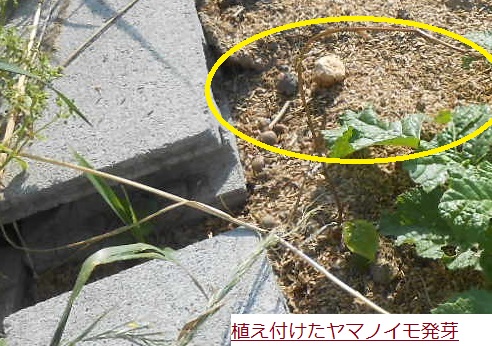 2014今年もヤマノイモの植え付けをしよう04月27日 家の保管しているヤマノイモの種イモをみてみたが 発芽しているのはすくないな04月29日 3月にhcで買っていた種イモをm-08に植え付けておく05月03日 畑のあちこちに 残っていたヤマノイモの分が どんどん 発芽してきている05月11日 支柱を乗り越えて どんどん 蔓がのびてきている05月18日 植え付けた種イモからの発芽 やっと 1本目が出てきている なんとかなりそう05月25日 支柱をどんどんつけている 全部のイモに支柱をつけた たくさんある今年もヤマノイモをあちこちでそだてていこうg-01 2-3本をうえつけている すこし発芽してきているg-03 2本のヤマノイモをうえつけている 発芽している 1mは超しているm-08 2-3本の発芽している 2mくらいになっているm-08 植え付けをしたのは5本 1本が5月18日に発芽した 残りも5月25日に発芽したm-20 2-3本の発芽がある 2mくらいになっているm-06 2-3本の発芽している 2mくらいになっているm-07 2-3本の発芽してきている 2mくらいになっている あちこちに 12-18本くらいい あちこちに 発芽している植え付けたのは 5月18日にやっと 1本目の発芽 残りも発芽した放置しているのは どんどん 発芽して 2mを超えてきている発芽したのには 支柱をどんどんつけていこう葉が茂るように どんどん支柱をつけよう 5-6----は m-08の写真 あちこち 伸びている5-9----は m-20の畑の分 これも 良く伸びている5-11---は m-08の写真 もう 支柱を追い越していいる 2mはある5-18---は m-08の種イモからの 発芽 やっと 1本目5-25---は m-06の写真 かなり長くのびて脇芽もたっぶりとでてきているヤマノイモには 全部に支柱をつけている植物学のお勉強その504草本のいろいろ 二年草 (biennial herb) 秋または春に発芽し、2~数年目に開花・結実して植物体全体が枯死するもの。生存期間は一年以上数年未満である。何年目に開花・結実するかによって以下のように分けられる。 真正二年草 (true biennial herb) 2年目に開花・結実するもの。シナノナデシコ (ナデシコ科)、マツムシソウ (マツムシソウ科) などがある。 可変性二年草 (pseudobiennial herb) 環境条件によって2~数年目に開花・結実・枯死するもの。二年草のほとんどが含まれ、メマツヨイグサ (アカバナ科)、コウゾリナ、ヒメジョオン (キク科) などがある。はた坊
