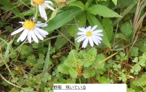 畑のあぜ道に生えている 野菊何かの 菊 名前は ??????netで 調べてみた野菊(のぎく)とは、野生の菊のことである。よく似た多くの種があり、地域によってもさまざまな種がある菊と野生種一般に栽培されている菊は、和名をキク(キク科キク属 Dendranthema grandiflorum (Ramatuelle) Kitam.)と言い、野生のものは存在せず、中国で作出されたものが伝来したと考えられている。したがって、菊の野生種というものはない。しかしながら、日本にはキクに似た花を咲かせるものは多数あり、野菊というのはそのような植物の総称として使われている。辞典などにはヨメナの別称と記している場合もあるが、植物図鑑等ではノギクをヨメナの別名とは見なしていない。現在では最も身近に見られる野菊のひとつがヨメナであるが、近似種と区別するのは簡単ではなく、一般には複数種が混同されている。キク科の植物は日本に約350種の野生種があり、帰化種、栽培種も多い。多くのものが何々ギクの名を持ち、その中で菊らしく見えるものもかなりの属にわたって存在する野生の菊はあるが野生種の菊はない?????菊らしく 見えれば 菊と 呼ぶのでなんでもよいらしい ?????日本らしく 柔軟性があるというのか 何なのか わからんなあ東日本大震災 3月11日発生10月30日は既に3年と7か月と20日後となった 阪神大震災は、1月17日で発生から20年どちらも想定外ということで 既成概念の見直しが必要 武田さんのコメントを参考にしている武田さんのブログ-------------------------------------------仮想社会(5) 仮装社会の具体例―1 政党の崩壊「kasou5seitou__20141014842.mp3」をダウンロード(政治的対立点の喪失と仮装化)原因: 資本主義のもとで日本が豊かになったこと(世界のトップレベルの所得) 共産主義が崩壊したこと(ベルリンの壁の崩壊とソ連の終焉)結果: 社会党の滅亡、対立する社会システムの喪失仮装化:目指す目標がない政党の出現崩壊: 十分に議論された日本の未来 自由党(自由主義国家)、社会党(社会主義国家)という「目指す目標」を示す政党がなくなり、「国民の党」、「みんなの党」、「太陽の党」というような名前がないのと同じ(民主主義のもとでは、政治は国民のものであり、みんなである)名前の政党や、「日本新党」、「新党さきがけ」、「維新の会」、「新生党」、「新進党」、「新党改革」、「たちあがれ日本」のように一般的に政治に求められるもの(政治は新しい社会を作り(現在のままなら政治は不要)、改革を目的としている。従って維新というのは政党名ではない。)をそのまま名前にしたり、若干の方向性はあるけれどあまりに当たり前の「生活の党」、「幸福実現党」と表現する党などが次々と産声をあげました。本来、政治を目指す人は未来に目を向けていて、「政治的信念」があるのですから、もし自由主義なら自由民主党へ入党すればよいわけですし、もし「新しい政治体制」を目指すなら、なんとかしてそれを国民に知ってもらう必要がありますから、名前はそのものずばりになるはずです。現在の日本は対立する社会システムをもつ政党は「自由民主党」と「共産党」があるだけで、あとは「権力を取るため」の政党で国民には関係がありません。さらに、共産党は共産主義を目指さないが過去の栄光があるから名前だけ残すとしているので、実際は共産党ではないことになります。つまり、共産党が共産党としているのは「かつての同志の歴史的価値」からしいのです。そうすると、現在では「自由で民主主義にもとづく社会」以外で政党が提案した社会システムはないということになります。そこで、たとえば現在の社会体として知られたもので、日本に存在しうる政治体制としては、「軍国党」(再軍備を目指す)、「小さい政府党」(消費税なし)、「やや大きい政府党」(消費税10%)、「福祉党」(消費税20%)の4つがありますが、自民党の一部が軍国党の人がいて、民主党の一部が福祉党ですが、自民党が消費税をあげようとし(福祉的考え方。自由なら税金を減らし、法人が利益をあげて、それから税金を得ようとする)、民主党(政策はムチャクチャ)が最初は「福祉、減税」と言っていたのでもともと矛盾があります。このように党名も政策も矛盾があるのは、「日本をどうするか?」、「招来の社会体制はどうあるべきか?」などには興味がなく、政治家になることが目的という人、特に二世議員が増えたことによると考えられます。しかし、現在の日本は、市場経済の破綻、国際的な貿易自由化(TPP)、貧富の差の拡大、周辺国との外交問題、教育や社会不安、それに自然の脅威に対する対応など多くの重要な問題を控えていて、社会の改革が必要なことは誰もが認めるところですが、新しく日本社会にあった社会ということ自体の議論が少なく、テレビでは長時間にわたって料理番組や食べ歩きが報道されているのが現状です。まさに政党名に現れた仮装社会とも言え、日本の将来の目指すところが見えないのです。それもそうかも知れま