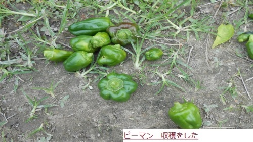 きゅうりの こぼれ種からの発芽してもの かなり 伸びてきている花もさいてきているので これから 実は収穫できそうだなあ しはらく 様子見をしておこう そのまま 様子をみて きゅうりの収穫をしよう トマトの発芽したものと じゃがいもの発芽したものは 雑草として除草しておいた きゅうりは まだ 収穫できそうなので しばらく 放置しておこう09月28日 雄花がたくさん咲いてきている10月05日 実がつきだしている あちこち 雌花がついている10月12日 収穫できた まだ いけそうぴーまん おべんきょうその12その他1970年代後半、「頭がピーマン」という流行語があった。ピーマンの中身が空洞であることを元に、「頭が悪い」という意味で使われた。はた坊