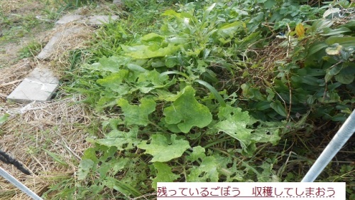 昨年 種まきも そろそろ 開始 第一弾03月24日 庭のpotでの種まきを開始 16potsx2=32potsの種まきをした03月31日 まだ 発芽していない まだ 時間がかかりそう04月07日 やっと 一部の物が発芽してきている 時間がかかる04月10日 まだ 遅い 発芽は一部のみ ゆっくりとしている04月14日 畑に移動した m07の畑に植え付けておいた 32pots 04月21日 その後 無事に苗はある05月03日 苗はすこし成長している05月12日 見た目にも すこし成長中05月19日 いい感じになってきている06月16日 雑草とりしておいた 無事だ種まきの 第二弾04月14日 庭で種まきをした 16pots 04月21日 まだ 発芽してきていない05月03日 発芽してきている05月04日 m-20の畑の畝に移動した06月16日 雑草にまけている 消滅した 何もなし その後 第三弾04月21日 庭の種まきをまた やっておいた 16pots 05月03日 まだ 発芽はしていない 05月12日 発芽した 即 m-20の畑に移動06月16日 雑草に負けた 何もなし 消滅した次は4だん06月09日 種まきをした06月15日 発芽してきている06月16日 畑に移動した m-08の畝に植え付けた次は第五弾06月16日 また 庭に種間きをしておいたno1-は無事no2-3-は 消滅したno-4-5-は 追加の種まきをしておいた が これも消滅した で 結果は no.1のみ09月01日 no.1のごぼうを収穫した 少ないが まあまあ ごぼう 雑草にかこまれて 消滅したのが多いが no1の物のみ 収穫できた まあ こんなもの09月25日 畑で 残っているごぼうをみたら これだけあったm-06 1本のごぼうと 小さい苗が4本 合計で 5本のみ なぜか 5本だけは まだ゜ごぼうが残っている大きくなれば 収穫だ 多年草なので いつまででも おいておこう11月17日 そろそろ 大きくなってきている今週にも 収穫してみよう11月24日 残りのごぼう 全部を収穫しておいた まあ こんなものだけど おしまいに今年03月09日 hcで ごぼうの種を買ってきた 即 庭にて 種まきをしておいた03月13日 発芽はまだ まあゆっくりとしている03月30日 発芽した g-03の畑に移動した これでokかな04月06日 g-3のこぼう 無事なり04月27日 すこし成長をしてきている05月24日 まあまあ 成長してきている06月01日 その後 なんとか 大きくなってきている 新しい畑に移動している まあ 無事なので次の種まきも そろそろ やっていこう04月13日 第二弾の弾蒔きをしておいた04月27日 発芽したのを g-03の畑に畝に移動した第三弾04月20日 庭で種まきをしておいた05月03日 発芽している 畑に移動した m-07に植えた第四弾05月04日 庭での種まきをしておいた05月17日 発芽したので m-08の畑に移動した これで 種まきはお仕舞い まあまあ 生育してきている06月15日 ごぼう 1本を収穫してみた まあまあ で ある 来週から 収穫できそうだなあ07月13日 ごぼう 2回目の収穫をした まあまあ なり どんどん収穫していこう07月20日 ごぼう 3回目の収穫をした07月27日 ごぼう 4回目の収穫をした08月02日 ごぼう 5回目の収穫をした08月17日 ごぼう 6回目の収穫をしたごぼう 残っているのは これだけ今週に収穫したら 御終いになるにら おべんきょうその12調理韓国料理では「ヤンニョム」と称する合わせ調味料の薬味としたり、キムチ、チヂミの具などとしてよく利用される。郷土料理では、岡山県で、黄ニラが寿司の具としても用いられる。栃木県鹿沼市などでは、蕎麦の具として茹でたニラを添えた、ニラ蕎麦がある。大分市周辺には、ニラを主な具とするニラチャン(ニラちゃんぽん)という麺料理があるはた坊