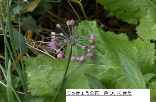 らっきょうの花色もついてきている観賞するにも 良い感じになっているにら おべんきょうその07生産国内生産量は約6万トンで、全生産量の4割超を1位の高知県と2位の栃木県が占め、次いで茨城県、群馬県、宮崎県、福島県、北海道が続く。ニラの生育に適した温暖な気候で知られる高知県香南市、また餃子の街である栃木県宇都宮市の周辺などが主な産地として有名。はた坊