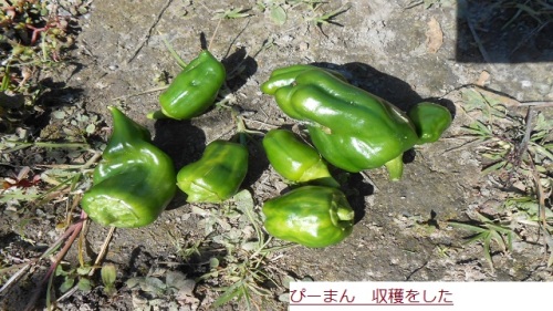 ぴーまん 伏見 ししとう 万願寺ただいま どんどん 植え付けているm-06 04月20日 ピーマン4本と 伏見2本g-07 04月27日 ピーマン2本と 伏見2本と万願寺2本と しし唐2本いろいろと 合計で12本 あちこちに植えている05月03日 黒マルチをつけておいた これで良し苗をあちこちに植えたので どれがどれなのか ???まあ 大きくなれば 実がつけば わかるだろう とりあえず 全部ともに 生育中 よーーし である06月01日 その後 花が咲きだしている が 実ができないと まだ どれがどれなのか ??生育はやや遅いのかな ??? きゅうり とまと なすびに比べると 小さいな06月14日 実がつきだしたのは 伏見あまながと ピーマンなど これは 伏見の実だなあ そろそろ 収穫できそう06月18日 実はあちこちについている 今週の日曜には 収穫できそう ぴーまん 伏見 万願寺 ししとう 唐辛子 5種類あるので 札をつけていこう06月15日 ピーマン 初の収穫をしておいた06月16日 万願寺のような 実もついてきている06月21日 ししとう 実もついてきている06月22日 ししとうの実の 初の収穫をした06月22日 万願寺とうがらしも 初の収穫をした06月28日 ピーマン2回目の収穫をした06月28日 伏見甘長 初の実を収穫した07月02日 万願寺 2回目の収穫をした07月06日 伏見甘長 2回目の収穫した しかし ちいさいなあ07月07日 万願寺3回目の収穫をした こちらは まあまあ07月09日 ピーマン 3回目の収穫をした 少ないままだなあ07月09日 ししとう 2回目の収穫をした これも すくないなあ07月13日 ピーマン 4回目の収穫をした 07月16日 万願寺 4回目の収穫をした07月19日 ししとう 3回目の収穫をした07月19日 伏見甘長 3回目の収穫をした07月19日 ピーマン 5回目の収穫をした07月20日 伏見甘長 4回目の収穫をした07月21日 ししとう 4回目の収穫をした07月22日 ピーマン 6回目の収穫をした07月23日 万願寺 5回目の収穫をした07月26日 伏見甘長 5回目の収穫をした07月26日 ししとう 5回目の収穫をした07月26日 ピーマン 7回目の収穫をした07月26日 万願寺 6回目の収穫をした07月30日 ピーマン 8回目の収穫をした07月30日 万願寺 7回目の収穫をした07月30日 ししとう 6回目の収穫をした07月30日 伏見甘長 6回目の収穫をした08月03日 ピーマン 9回目の収穫をした08月03日 伏見甘長 7回目の収穫をした08月03日 万願寺 8回目の収穫をした08月03日 伏見甘長 8回目の収穫をした08月10日 ピーマン 10回目の収穫をした08月10日 万願寺 9回目の収穫をした08月10日 ししとう 7回目の収穫をした08月10日 伏見甘長 9回目の収穫をした08月31日 ししとう 8回目の収穫をした08月31日 伏見甘長 10回目の収穫をした08月31日 ピーマン 11回目の収穫をした08月31日 万願寺 10回目の収穫をした09月07日 ピーマン 12回目の収穫をした09月07日 万願寺 11回目の収穫をした09月07日 ししとう 9回目の収穫をした09月07日 伏見甘長 11回目の収穫をした09月14日 万願寺 12回目の収穫をした09月14日 ピーマン 13回目の収穫をした09月14日 ししとう 10回目の収穫をした09月14日 伏見甘長 12回目の収穫をした09月21日 ピーマン 14回目の収穫をした09月21日 万願寺 13回目の収穫をした09月21日 ししとう 11回目の収穫をした09月21日 伏見甘長 13回目の収穫をした10月05日 伏見甘長 14回目の収穫をした10月05日 ピーマン 15回目の収穫をした10月05日 ししとう 12回目の収穫をした10月05日 万願寺 14回目の収穫をした10月12日 ピーマン 16回目の収穫をした10月12日 伏見甘長 15回目の収穫をした10月12日 万願寺 15回目の収穫をした東日本大震災 3月11日発生10月21日は既に3年と7か月と11日後となった 阪神大震災は、1月17日で発生から20年どちらも想定外ということで 既成概念の見直しが必要 武田さんのコメントを参考にしている武田さんのブログ-------------------------------------------神の思し召し? 命をつなぐもの(2) いつか来た道「kami2__20141019645.mp3」をダウンロード人という生物が生き物全体の命を救おうとしている。それは間違いない。かつて空気中にあり、生命を保ってきた二酸化炭素が少しずつ地中に溜まって石油や石炭になってきた。そしてもう少しで空気中の二酸化炭素がなくなって、地球の全ての命の終わりがきそうな時に、人間が登場して地下から石油や石炭を掘り、二酸化炭素に戻して、今、再びいのち輝く地球を取り戻そうとしている。かつて95%もあった空気中の二酸化炭素は、0.04%に減ってしまったけれど、これを1%ぐらいまでは増やしたいものだ。その時、なにか地球に変化が起こるだろうか? 人によっては地球の気温が上がるというけれど、二酸化炭素が減る方は未知のことだから心配だけれど、増える方は「いつか来た道」だから過去を調べればわかる。温暖化を心配する人の試算では二酸化炭素は、今後の100年間で0.01%増えて、0.05%になるという。大雑把に見ると、恐竜が栄えていたころ、地球はまことに正常で生物が繁栄していたが、その頃の二酸化炭素は1%から数%とされているので、0.01%ぐらい増えても特に変化はないだろう。もう少し精密に見ると、0.05%ぐらいだったのは今から40万年ほど前で、も