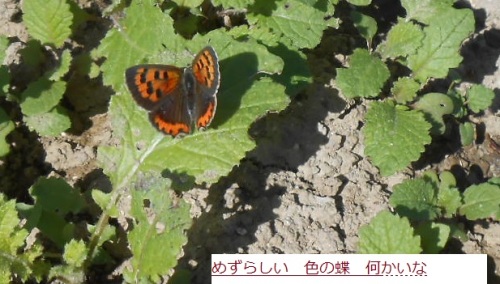 白と黄色の蝶は 結構といるがこれは あまり 見ないなあ紅シジミらしいベニシジミ(紅小灰蝶、学名:Lycaena phlaeas)チョウ目(鱗翅目)シジミチョウ科ベニシジミ属に分類されるチョウの一種。春に日当たりの良い草原でよく見られる小さな赤褐色のチョウである。成虫の前翅長は1.5 cmほど。前翅の表は黒褐色の縁取りがあり、赤橙色の地に黒い斑点がある。後翅の表は黒褐色だが、翅の縁に赤橙色の帯模様がある。翅の裏は表の黒褐色部分が灰色に置き換わっている。時に白化する場合もある。雑草の多いところにいるらしいつまり となりの水田がこの2-3年 雑草だらけになっているのでこの 紅シジミ 増えてきているのかな ????万願寺唐辛子 おべんきょうその02大正末期から昭和初期にかけて京都府舞鶴市万願寺地区にて伏見系のトウガラシとカリフォルニア・ワンダー系のトウガラシを交配して誕生したものと言われている[2][3]。果肉は大きくて分厚く、柔らかく甘味があり、種が少なく食べやすいことが特徴。その大きさから「とうがらしの王様」とも呼ばれている[3]。知名度の高い代表的な京野菜のひとつであり、外国系とうがらしの血統を持つとされながら、 伝統的に生産され続けている野菜として京都府が特に選定した「京の伝統野菜」に準ずる野菜として指定されている。[3]、はた坊