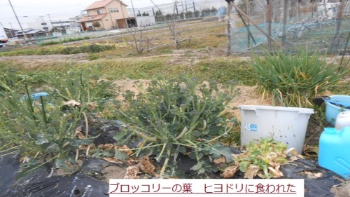 G-07のブロッコリーこちらも ひよどりさんに たくさん 葉が食われているまあ 花蕾はたべていないチンゲン菜に加えて ブロッコリーの葉もかなり 食われているひよどりさん まあ 葉だけを うまく 食べているM-08の方は 無事ではあるだいこん おべんきょうその04変種栽培種も変種 R. sativus var. longipinnatus として扱われるが、原種ははっきりしていない。染色体はn=9で、アブラナ属の多くの野菜と同様自家不和合性を持ち、交雑しやすい。 遺伝的研究から、日本のダイコンはヨーロッパ系統、ネパール系統とは差が大きく、中国南方系統に近い[4]事が確認されている。ハツカダイコン(R. sativus var. sativus)ハマダイコン(R. sativus var. hortensis f. raphanistroides)日当りのよい砂浜などに自生的に生育する。野草として食用にされるほか、食用選抜も行われている。逃げ出した栽培種が野生化したと考えられていたが、遺伝的研究では日本の栽培種と差が大きく[4]、野生種の可能性が高い。ノダイコン日本の福島県会津盆地、山形県米沢盆地などでみられる内陸性の自生種。遺伝的に栽培種に近く[4]、野生化したものと見られるが、中国系統と交雑する前の日本在来種とする説がある[5]。黒大根(R. sativus var. niger)根の表面が黒く内側は白。根が長くなる品種と蕪の様に丸い品種がある。丸い品種は肉質が硬くデンプンが多い。花の色は白や紫。なお、アカザ科のテンサイを形状から「サトウダイコン」と呼ぶが、ダイコンとは目レベルで異なる縁遠い種である。はた坊