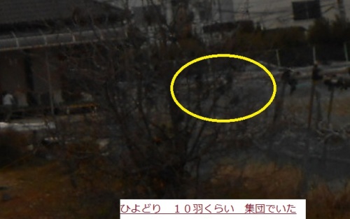 ひよどりたくさん 隣の畑の柿の木に泊まっていた何かいな みかんでも食べにきているのかな樹木の実などをよく食べているので 集まっているのかな と おもっていたg-1-3-7の畑の野菜を食べに来ていたネットをみたら全長27.5cm。全体が灰色に見える色彩の鳥です。花の蜜や果実が大好物です。これは熱帯が主生息地であった祖先ヒヨドリの名残り。今では虫や草の葉、芽も食べますが、花が咲くと蜜を吸いにやってきます。東京では1970年頃までは10月に渡来し、4月に渡り去る冬鳥でした。それが、留鳥として一年中棲むようになりました。より南に棲んでいた留鳥が北上してきたものと考えられています。また、今も秋には北海道から多数のヒヨドリが本州、四国、九州へ渡ってきます。ヒヨドリは9月下旬から10月中旬にかけて、数羽から200羽ほどの群れで西や南に飛んでいく。スズメとハトの中間サイズで、グレーを基調にした羽色だが、遠くを飛んでいると小さく黒くしか見えない。「ヒヨ、ヒーヨ」という声と、波を描くように上下する飛び方に気をつけているとわかるだろう。 ヒヨドリはスズメやカラスがいない島々にも分布しており、日本で最も広く見られる鳥といえる一方、日本列島周辺にしかいない。「どこのヒヨドリがどこまで移動するのか」はよくわかっていないひよどり 移動する場所などについては誰も調べていないとのこと 東日本大震災 3月11日発生02月22日は既に3年と11か月と11日後となった 阪神大震災は、1月17日で発生から21年目に どちらも想定外ということで 既成概念の見直しが必要 武田さんのコメントを参考にしている武田さんのブログ----------------------------------温暖化を子供にどう教えるのか?(2) イネに感謝する心 もともと生物は「二酸化炭素を食べて(吸って)、炭素を作り、それで体とエネルギーを得る」というものです。だから人間も本来は自分で二酸化炭素を吸って、それを体の中で炭素にして自分の体を作るのが良いのですが、すでに人間にはその機能は失われています。そこで、人間は部分的にそれを「補助生物」(家畜のようなもの)で補っています。もっとも基本的なものが「イネ」、その他に「果物」や「肉」があります。人間はイネに「二酸化炭素から炭素(米粒)」を頼み、果物にビタミンC(サルの時代に合成能力を失った)、必須アミノ酸、ビタミンなどを肉に頼っています。この地球上に生物が誕生して以来、37億年も経つのですから、人間は結構、サボり生物で体や生活に必要なものを他の生物に頼っているので、あれを食べなければならない、これも・・・と栄養学が必要となります。温暖化と言って二酸化炭素を毛嫌いしているのは、自分が生きているのは「二酸化炭素」を原料にして、イネに食べてもらい、それを炭素にしてカラダをつくり、エネルギーを得ているという実感がないからでしょう。生物が大切なら、二酸化炭素を増やしたほうが良いですし、ちょっとした気温の変化がイヤなら二酸化炭素を減らしてイネにさらに苦労してもらい、最終的には早い時期に地球上の生命を全部、絶やしてしまうことを目的とするのが良いと思います。この全体像を子供たちに説明して、あとは子供たちが親になった時の判断に任せるというのが教育です。(平成27年2月9日)ふむふむはた坊