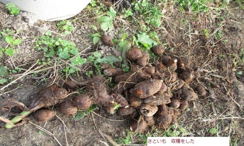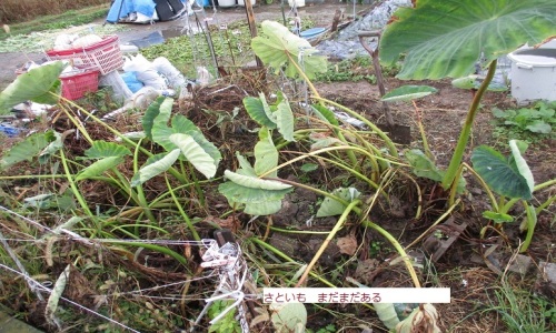 さといも 昨年 01月19日 サトイモ 2回目の収穫をしておいた 03月09日 hcで サトイモの白目大吉を買ってきた 04月17日 昨年の残りのサトイモの発芽 2本の芽が出てきている 04月30日 白芽大吉の種イモ m-08の同じばしょに植え付けをしておいた 05月03日 納屋に残っていた種イモがあったので これも畑に移動して植え付けた 植え付けた種イモからの発芽はまだない しかし 昨年の残りのサトイモが どんどん 発芽してきている ブロックのまわりにも3本が発芽してきている 同じ場所だけど まあ なんとか なるだろう 今年もサトイモ 水路の横の溝の場所で 育ててみよう 06月02日 水路の水がながれるようになった これで 安心なり 06月08日 サトイモがたくさん発芽している 今年も無事に育ってくれそう 06月22日 その後 発芽したのは かなり多くなっている 見た目もにぎやかになってきている サトイモ 今年も昨年と同じ場所だけど 今の所は良く育ってくれている 07月20日 その後も順調なり 大きくなって 背も高くなってきている 見事なものだなあ 08月02日 その後も 大きくそだっている みずの心配はいらないようだ 08月17日 その後も さといも 元気なり 茎はあまり太くないけど 無事なり 08月24日 その後も さといも 元気だ 虫がいた 黒いの1匹 逮捕しておいた 08月31日 雑草とりして 追肥した となりのヤマノイモよりも背が高くなった 雑草とりをしておく 追肥もした 09月21日 その後 秋になってきたので 勢いもやや弱くなってきている 10月05日 その後 秋になって 涼しくなってきている 葉もすこし枯れだしてきている 10月19日 その後 葉も スキスキになってきつつある さといも ゆっくりと 収穫する予定 11月になってから 掘り起こそう 11-12-01-02月と ゆっくり 収穫する予定 11月02日 さといも 初の収穫をした まあまあ たくさん出てきた 11月16日 さといも 2回目の収穫をした これも まあまあ 12月01日 さといも もみがらがもうないので サトイモには もみがらは なし 12月06日 さといも その後も葉は枯れてきている 12月23日 サトイモ 完全に葉は枯れた 葉もかれつつある サトイモの横には ヤマノイモもあるので サトイモと ヤマノイモ 12月には 2回ずつ 収穫していこう 12月28日 さといも 3回目の収穫をした 今年 01月12日 さといも 収穫しようかな と 思いながら 結局 寒いので やめた 寒くなると 外にでるのが どうも おっくうになるなあ 01月24日 さといも またもや 収穫しようかなと思いながらも 外は寒い また あとにしよう とうとう 芽が出てきている 04月04日 残りのサトイモ 芽が出てきている そのまま サトイモ 今年も育てていこう 04月12日 その後も どんどん 芽が大きくなりつつある 04月19日 サトイモ 発芽が どんどん 続いていて かなり増えている サトイモだらけになりそう 04月26日 さといも 芽も はっきりとわかるくらい 大きくなってきつつある 元気なもの 05月16日 発芽したサトイモ かなり大きくなってきている 混雑しすぎている 05月23日 さといも 密集したまま 茂ってきている 密集しているての゛ すこし 分散させよう 05月31日 さといも 分割して すこし間隔をあけて植えなおしをやっておいた 06月06日 そのご 雨がふって 元気になってきている 06月13日 さといも 生育がよくなってきている 水路に水が流れるようになり 元気なり 06月20日 さといも 回りのサトイモと比べると とんでもなく 大きくなっている これはすごいなあ 06月21日 それにしても 今年のサトイモは育ち具合は良い サトイモ 小芋を植えるよりも 親イモを植えたほうが 育ち具合は良い サトイモは 親イモをうえたら 成長も収穫も良いということだなあ これは すごいわ 06月27日 さといも 元気に どんどん 大きくなってきている 07月11日 さといも 葉が とんでくなく 大きくなっきているなあ 07月18日 横の水路にも 葉がかかってきている 良し 07月25日 さといも まだまだ 伸びてきている 昨年は発芽したのが6月08日だった が 今年は 発芽が 4月04日だった と いうことは 今年のサトイモ 昨年より 2か月も早く成長しているわけで 大きいはずである 残りもののサトイモが発芽したので 発芽も早い 生育も早い 08月01日 サトイモの葉 デカい デカい 猛暑でも水路の水が横を流れているので元気なり 08月08日 さといも 茎をみてみた 細いが 数はすごいもの 密集しすぎているかな??? 08月22日 さといも 追肥をしておいた これで もっともっと 大きくなるぞ 09月06日 さといも 葉が倒れているのがおおいので 紐で固定してじゃまにならないようにした 09月12日 さといも 葉を紐で固定して まわりにじゃまにならないようにした これで 見やすくなった 09月20日 さといも 今は葉をみているだけ 虫もいないし 絶好調みたい 収穫は11月から まだ 先だなあ 育ち具合は これまでで 最高の出来である が イモは収穫してみないと 判らない 10月10日 雑草とりしていて さといも 1つ抜いてしまった 10月12日 サトイモ 葉もやや元気がなくなりつつある 冬になってきているのかな 10月18日 さといも 土をかけて イモが太りや