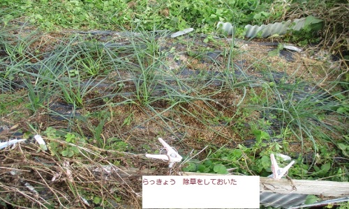 昨年 hcでの売り物が出ていたので かっておいた 植え付けは9月から 09月07日 らっきょう m-08の畑の畝に植え付けた 09月14日 発芽はまだ 2週間くらいしてから 発芽してくる見込み 09月21日 やっと 発芽してきている 09月28日 いつも 花の蕾みたいのが 出てきている もうすぐ 花が咲くようだな 10月29日 花が咲いてきている 11月08日 その後 生育して大きくなってきている 11月30日 雑草とりをした らっきょうらしくなってきている 12月13日 追肥をしておいた 12月23日 雑草がまた 増えてきている 01月03日 その後も らっきょう 元気なり 01月24日 まあまあ 元気である 01月08日 それなりに 元気なり 雑草もすくないな 02月15日 そろそろ 雑草とりもしないとねえ 03月01日 やっと 雑草取りをしておいた 03月08日 春らしくなり 生育が始まってきている 03月14日 らっきょう いい感じになってきている 03月22日 らっきょう 雑草もなくなって すっきり 04月04日 らっきょう まあまあ 生育している 良し 04月12日 らっきょう 青々としてきている 06月06日 らっきょう 収穫をした らっきょう 今年の根っこは かなり大きくなっている 今年 また hcでのらっきょう 買ってきている 08月29日 hcで らっきょう 買ってきた 08月30日 m-07の畑で 植え付けをしておいた 09月12日 発芽している 09月19日 花つぼみ 大きくなってきつつある 09月22日 葉もつづけて でてきている 09月27日 花つぼみ まだ 花は咲いていない 10月04日 葉も伸びてきている らっきょうの花 咲くのは10月の下旬なので まだ2週間ぐらい 後となる 10月10日 花らしくなってきている 色はまだうすい 10月18日 花の色 すこしついてきている 開花も近いなあ 10月25日 花が開花した 下の分が開花してきている 10月28日 らっきょう 眺めも良くなっている まあまあだなあ 11月01日 らっきょう 花も満開になった 追肥をしておいた 11月22日 らっきょう 放置していたら 雑草だらけになってきている マルチしているが 雑草は生えるなあごぼう おべんきょうその02特徴日本で自生はしていないが、縄文時代の遺跡からは植物遺存体として確認されており、縄文時代か平安時代に日本に伝わったともいわれる[2]。主に食すようになったのは江戸時代から明治にかけてであり、根や葉を食用とする。茎の高さは1mほど、主根の長さは品種にもよるが50cm〜1mほどある。花期は6〜7月。紫色のアザミに似た総苞にトゲのある花を咲かせる。大別すると長根種と短根種がある。栽培の主流となっているのは長根種の「滝野川ごぼう」とその改良種であり、収穫時には直径3センチ、長さは1メートル前後となる。一般に関東は長根種が多く、関西では短根種が多い。ゴボウは連作を嫌うため、同じ畑では2-3年後でないと作れない[3]。はた坊