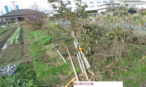 裏の庭に柿ノ木を植えている 高さ6mで幹の直径が11センチで竹のような細い柿ノ木 2002-10月 柿の種 ポットに植える 2003-06-1日に芽がでていた 2006-03 3.0m 太さ 3センチ 3年生 2007-03 4.0m 4センチ 4年生 2008-03 4.7m 5センチ 5年生 ただ今 ココ 秋に満6年 2008-11 4.7m 6センチ これで6年と2ヶ月目 発芽してからは5年と5ヶ月 2009-04 4.7m 7センチ すこし太くなる これで6年と8ヶ月 発芽してから5年11ヶ月 2009-06 4.7m 7センチ これで6年と10ヶ月が過ぎた 発芽してからでは6年と1ヶ月 2009-09 5.7m 7センチ これで7年と01ヶ月が過ぎた 発芽してからでは6月と4ヶ月 2009-12 5.7m 9センチ これで7年と04ヶ月が過ぎた 発芽してからでは6年と7ヶ月 2010-04 6.0m 9センチ これで7年と08ヶ月が過ぎた 発芽してからでは6年と11ヶ月 2011-01 6.0m 10センチ これで8年と05ヶ月が過ぎた 発芽してからでは7年と8ヶ月 2012-01 6.0m 10センチ これで9年と05ヶ月が過ぎた 発芽してからでは8年と8ヶ月 2013-02 6.0m 10センチ これで10年と06か月が過ぎた 発芽してからでは9年と9か月 2013-05 6.0m 11センチ これで10年と09か月が過ぎた 発芽してからでは10年 2013-06 3.0m 11センチ ついに 大きくなりすぎたので カットした 2014-05 3.0m 12センチ 今年は半分の高さで再度 枝が増えだしている 11年目となっている 2014-06 2.0m 13センチ 今年もまた 大きくなったので 2mの高さでカット 2015-06 2.0m 13センチ 今年も枝がでたが 花と実はなし 庭にあるのは 甘がきの苗が 1本 渋柿の苗が 畑に4本ある 苗が 合計5本あるので これらを 再度 育てている 庭では こぶりの柿の木を 再度 育てていく予定なり 06月04日 2mの高さにカットした 06月22日 発芽してきている 18日で 新しい発芽がみられる 06月29日 芽が伸びてきている 07月06日 その後 どんどん発芽してきている にぎやかになってきている 07月13日 その後 発芽したのは 成長してきている 07月20日 あちこち 発芽して 若葉が賑やかになっている 07月21日 下の部分からも 枝が出てきている よしよし 07月27日 そのごも 見た目はいい感じになっている 08月03日 再度 枝が じゃまというので カットした 08月24日 枝は良く伸びてるものだなあ 細いが長い枝が出てきている 08月31日 これで 柿の木の剪定はなし このまま 枝を伸ばしていこう 09月07日 そのご 枝は また 伸びてきている 枝は東にむけて 伸ばしていこう 09月14日 上からみたら かなり 小さくなっている まあ こんなものかな 10月04日 その後もちいさいまま でも こんなもの 枝を横に横に伸ばしていこう 11月09日 その後は 動きはなし 葉もそのまま 伸びもなし 今年はこれくらいで成長はストップしている 11月22日 葉も元気はなし そろそろ 紅葉して落下してしまいそうに 11月30日 葉は紅葉した 落下してしまいつつある 小さく育てて 枝は 横に 横に 伸ばしていこう 01月12日 その後 枝は ちいさいのが すこし 今年は実はできるかな ???? 02月07日 その後 芽があるのか ないのか ?? まだ 早いかな 6月に出た枝は 芽があるのかな ??? 02月14日 柿木の枝 芽らしいのが ふくらんでいるようにも 見える どうかな 02月22日 柿の木の枝 その後も あまり変わりはなし 03月08日 やはり 昨年と同様にやや膨らんできている 春だ 03月22日 庭の柿の木の芽 すこし はっきりとしてきている 03月29日 庭の柿の木の芽 もう すこしで 葉がでてきそう 04月04日 芽から 小さい葉が出てきつつある 04月12日 芽も すこし 葉も大きくなりつつある 雨もよく降るなあ 04月19日 芽もおおきくなってきている 昨年は花芽が 4月27日についていた あと 一週間かかりそう 04月26日 花芽 探しているが まだ 見当たらないなあ 04月29日 花芽 まだ ないなあ どうかな 昨年はあったけど 今年はまだ ない 05月30日 花芽なし 今年も 実はなし と なった 07月14日 その後も 葉だけは 良く育っいる 08月30日 枝が またまた 伸びてきている 上に 上に伸びてきている 11月03日 その後 秋になって 冬になりつつある 葉は 紅葉して 落葉となってきている 11月15日 上は落葉して 残りも バラバラと葉は 落下している もうすぐ裸になりそう 11月23日 もう のこりの葉もわづか もうすぐ 裸になりそうごぼう おべんきょうその06食文化の違いによる誤解太平洋戦争時の捕虜虐待とゴボウゴボウにまつわる食文化の違いがもたらした悲劇的な逸話として、「戦時中、外国人捕虜にゴボウを与えたところ、木の根を食べさせられたと誤解され、戦後にBC級戦犯として虐待の罪で処罰された」というものがある。1952年(昭和27年)12月10日に行われた第15回国会参議院法務委員会で法務省保護局長齋藤三郎が行った米国派遣報告では裁判のときには相当国情が違い、日本の事情を知らない人が裁判をしたため不当と言えば不当と言える裁判があるのだ。一例としては、俘虜収容所の所員が、終戦真際食糧が非常に不足している。併しこれに対してできるだけいい食物を与えたいというのでごぼうを買つて来て食わした。その当時ごぼうというのは我々はとても食えなかつたのだ。我々はもう大豆を二日も三日も続けて食うというような時代で、ごぼうなん
