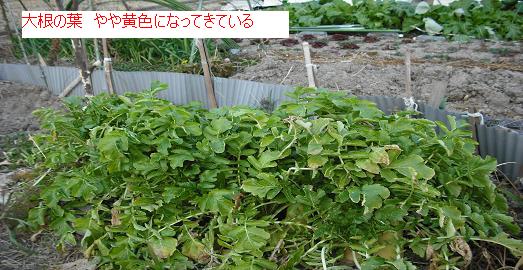 さすがに 大根の葉も寒さが強くなると 葉の色がやや黄色になってきつつある