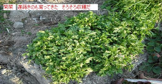 寒いので 前の収穫したあとの菊菜はまだ そのまま 新しい葉はあまり出てこない