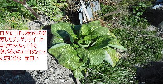 チンゲンサイ コボレ種の自然の発芽の1本 デカイ